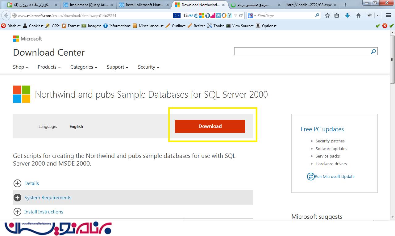ابتدا باید از این لینک فایل بانک اطلاعاتی Northwind را دانلود نمایید.