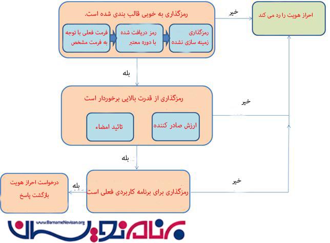 1- تائید امضاء: کلید مورد استفاده برای ثبت رمز صادر شده، منحصر به مقام صادر کننده است. حال رمز با یک کلید که رمز سوال ثبت شده است