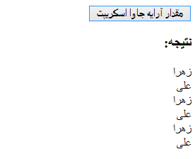 <input type="button" value="مقدار آرایه جاوا اسکریپت" onclick="DisplayJavascriptArray();" />