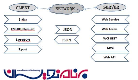حال این داده های JSON می توانند بر روی شبکه به نقاط دیگر جهان با تکنولوژی متفاوتی فرستاده شوند.