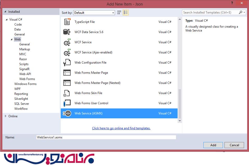 مرحله 2- یک پروژه جدید ایجاد کرده و یک وب سرویس به آن اضافه کنید.