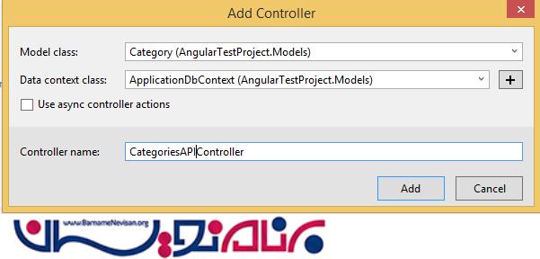 Model Class آن را مدل Category انتخاب می کنیم و نام آن را CategoriesApiController نامگذاری می کنیم.