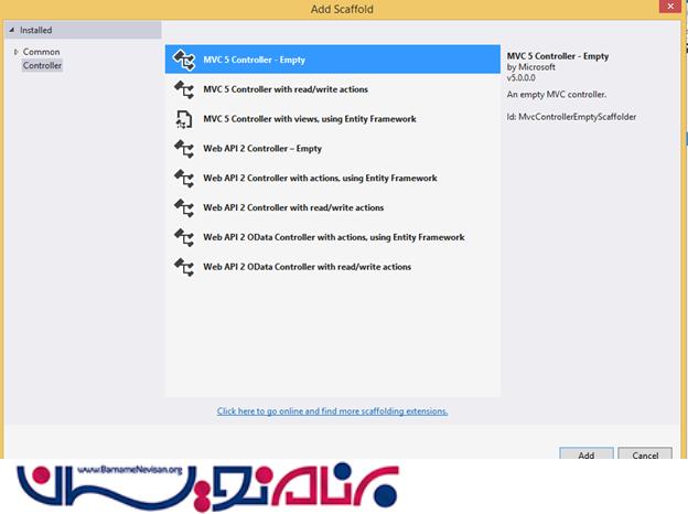 حالا یک کنترلر empty با نام CategoriesController می سازیم.