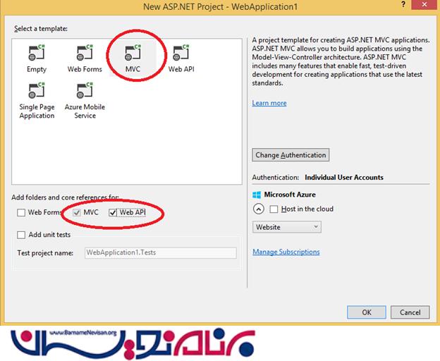 یک پروژه جدید MVC ساخته و تیک WEB API را هم می زنیم.