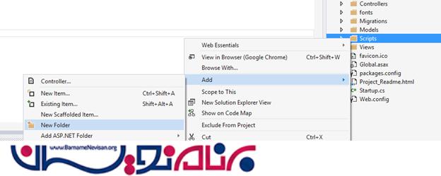 روی پوشه Script کلیک راست کرده و پوشه ای با نام Category می سازیم.