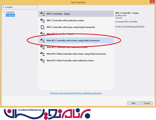یک کنترلر از نوع Web API2 می سازیم.