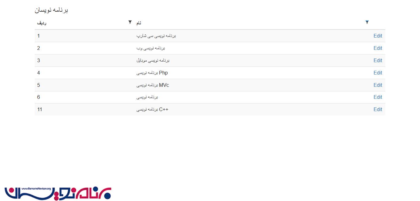 و یک دکمه برای ویرایش در آن ایجاد کردیم که طریقه آن در گرید به شکل زیر است