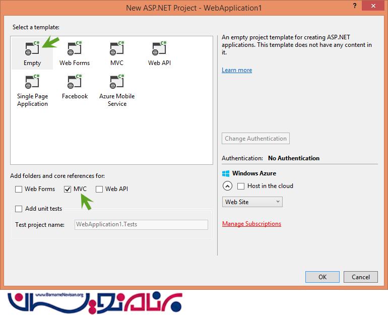 حال یک پروژه از نوع MVC ایجاد میکنیم