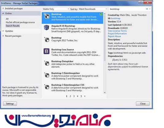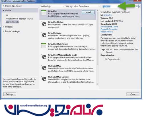 و در قسمت جستجو ، Grid .MVC را جستجو کنید