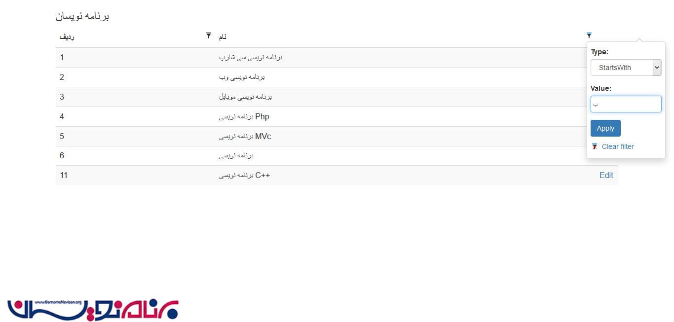 چهارشنبه 27 خرداد 1394در این مقاله قصد داریم ، مرتب سازی ، صفحه بندی ،فیلتر ، و نمایش اطلاعات با استفاه از Grid.Mvc را آموزش بدهیم