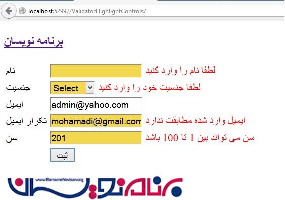 تغییر رنگ کنترل ها در زمان اعتبار سنجی در ASP.Net