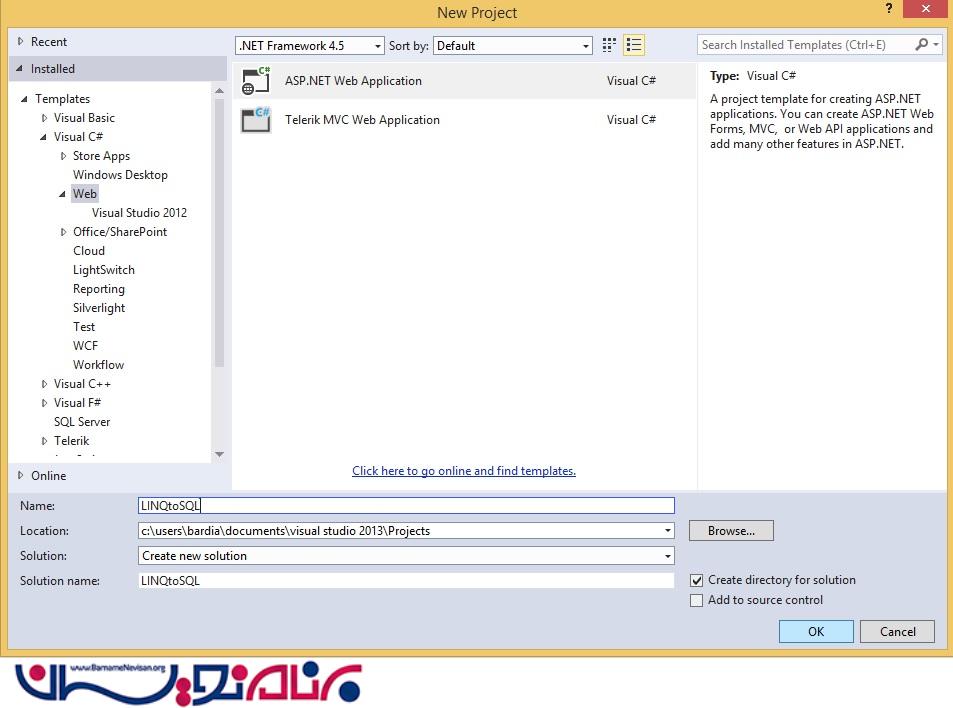 یک پروژه ASP.NET با نام LINQtoSQL می سازیم.