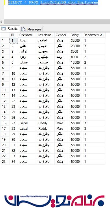 شنبه 30 خرداد 1394در این مقاله نحوه عملیات delete ، insert، update و Select رکورد در بانک اطلاعاتی توسط LINQ را خواهید آموخت.
