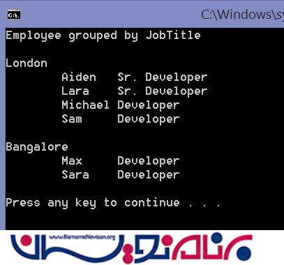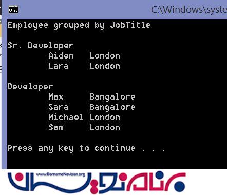 foreach(IGrouping < string, Employee > kvp in employeeLookup)
