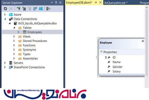 بعد از خصوصیت employees و قبل از آن جایی که عملگر AsEnumerable فراخوانی می شود برنامه را بر می گرداند.