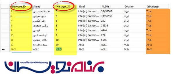 همان طور که مشاهده میکنید در ستون Manager_ID، آیدی مدیر را باید درج کرد که اطلاعات گرید بر اساس آیدی مدیر پر میشود و همچنین فیلد IsManager باید برای نمایش در گرید برابر با True قراردهیم