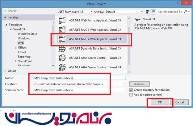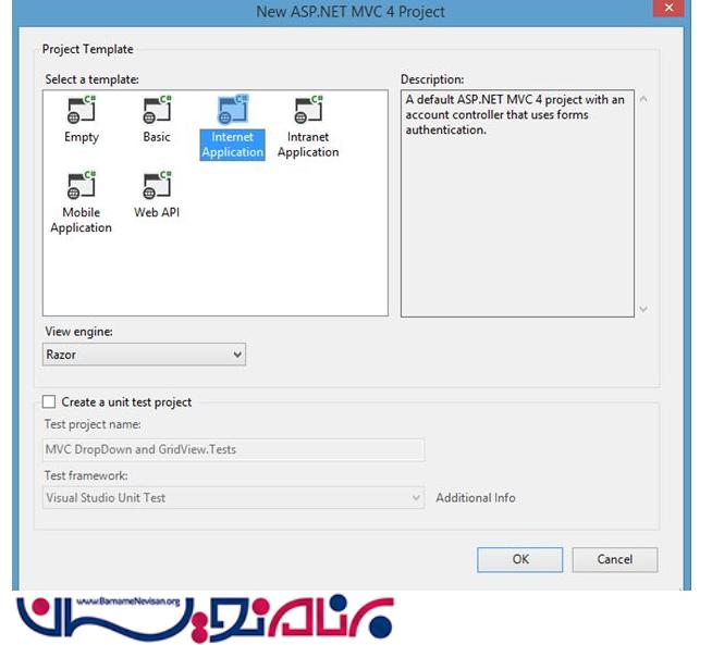 حال ویژوال استادیو 2012 را بازکنید و یک پروژه از نوع Asp.Net.MVC ایجاد میکنیم.