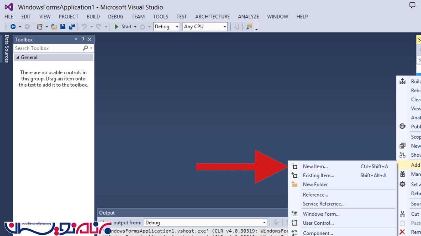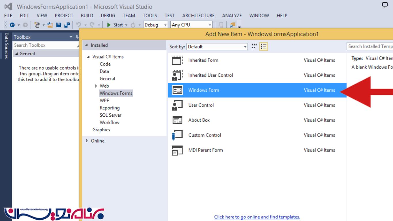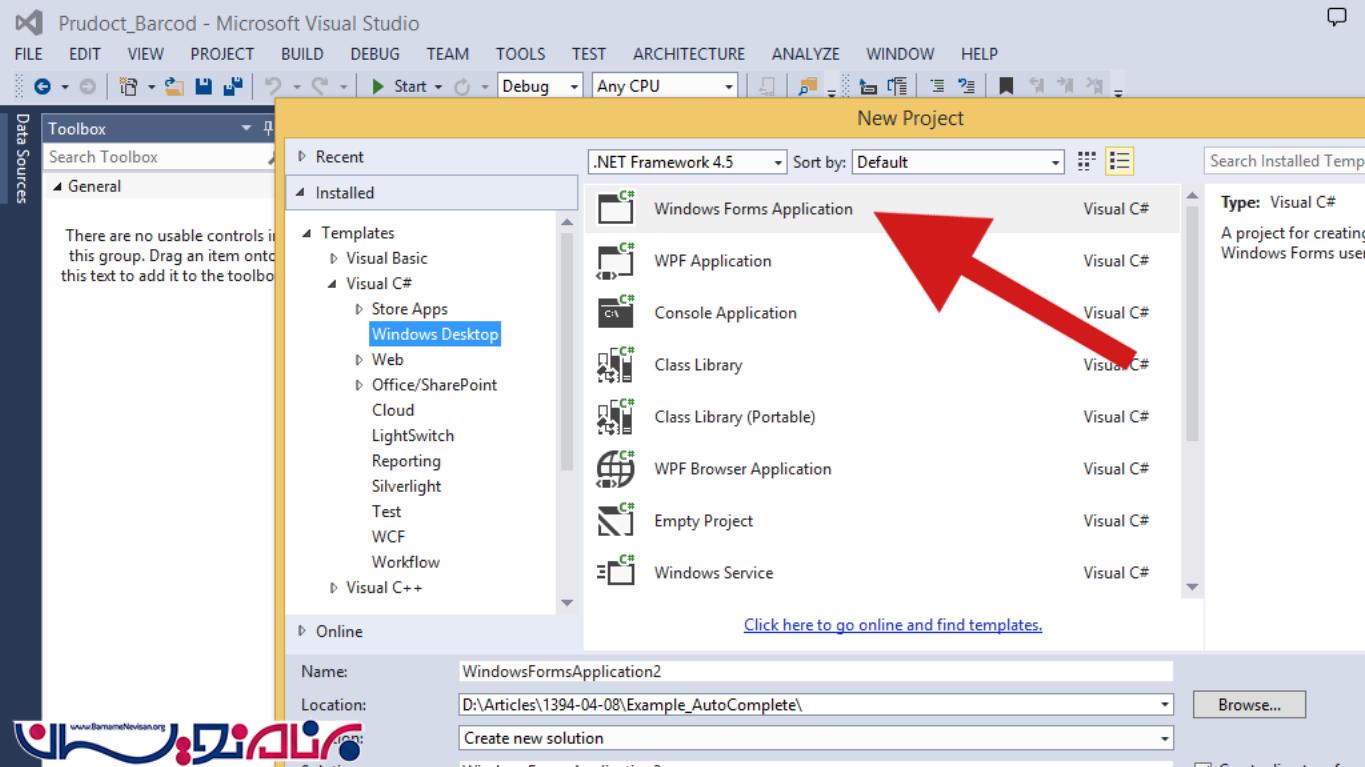 در ابتدا یک پروژه windows form در ویژوال استودیو ایجاد میکنیم .
