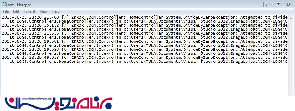 از آنجایی که چندین بار اجرا کردیم خطای مشابه را به همان تعداد با تاریخ و زمان نشان می دهد. بنابراین ما از این راه می توانیم برای خطایابی در سناریوی واقعی Log4Net استفاده کنیم.