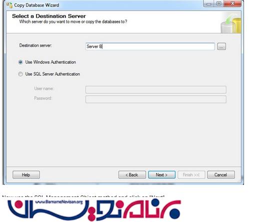 در این مرحله نام سرور یا پایگاه مقصد را انتخاب میکنیم(سرورB)