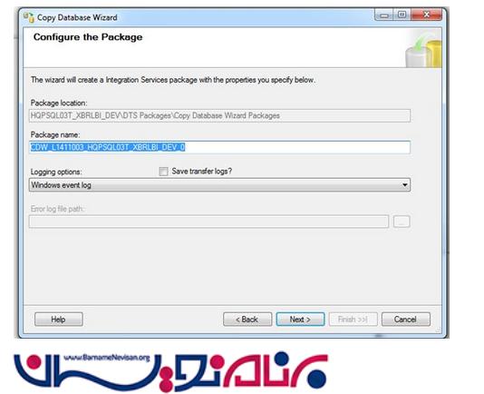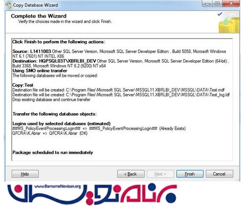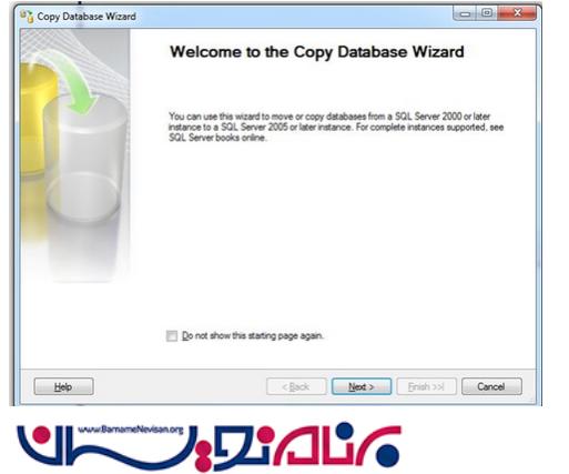 هنگامی روی Copy Databas کلیک میکنیم با صفحه ای مانند زیر روبه رو میشویم.