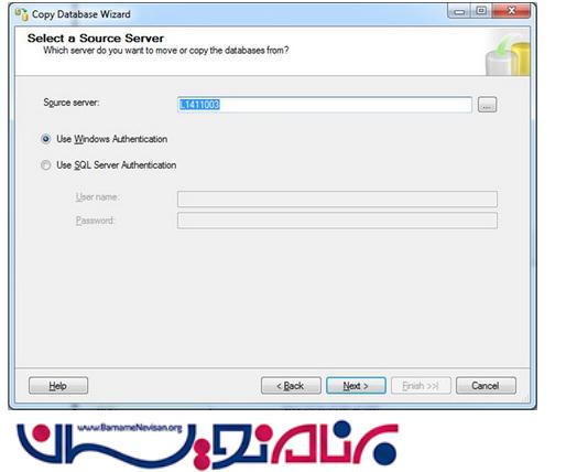 در این مرحله باید نام پایگاه ای که از آن میخواهیم بانک اطلاعاتی را کپی کنیم بنویسیم (در این مثال نام پایگاه ما سرور A است)