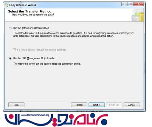 این مرحله برای انتقال فایل های mdf , ldf به پایگاه مقصد میباشد.