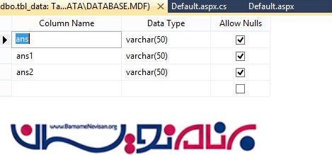 در Server Explorer روی Data base خود کلیک کنید سپس Tablesدر Add New Table را انتخاب کرده و جدول را مانند مثال زیر ایجاد کنید :