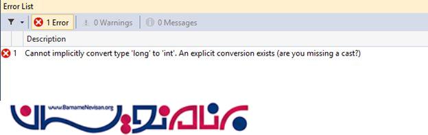 این دستور با یک خطا مواجه می شود به این دلیل که در حالت پیش فرض نوع داده enum یک نوع integer است . در مثال قبلی فراتر از محدوده integer داشتیم به همین دلیل خطا رخ داد . برای حذف این خطا نوع داده enum را تغییر ی دهیم .