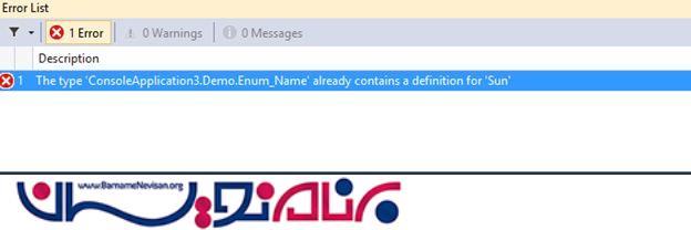 در یک enum نمی توانیم متغیر را بیش از یکبار اعلام کنیم ،هر متغیر باید منحصربه فرد باشد .