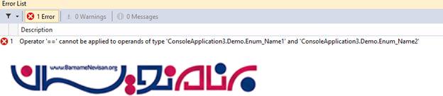 این مثال نشان می دهد که نمی توانیم دو متغیر enum را باهم مقایسه کنیم .