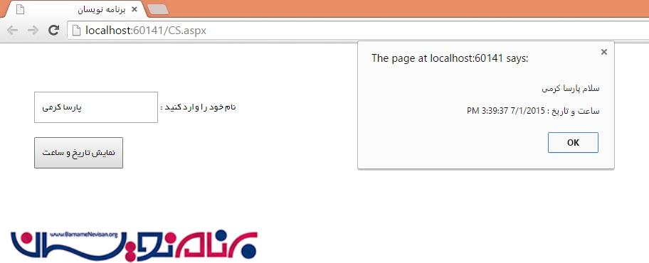 پس از ورود نام ، برروی نمایش تاریخ و ساعت کلیک میکنیم تا نتیجه را ببینیم :