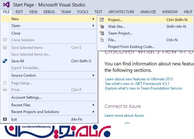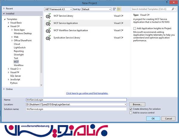 اکنون Visual Studio را برای ایجاد WCF باز کنید .