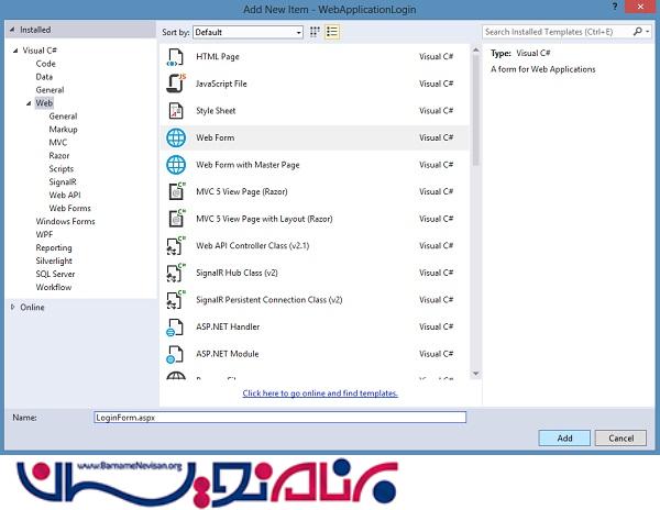 صفحه LoginForm.aspx بصورت زیر می باشد :