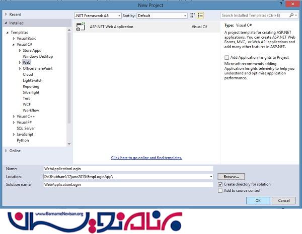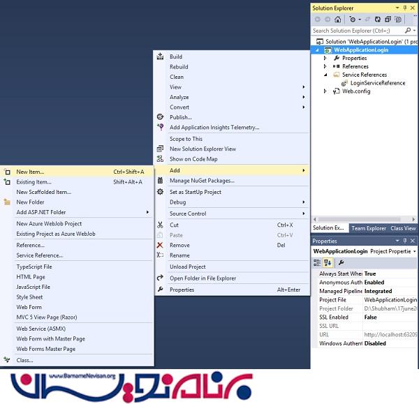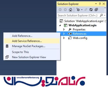 اکنون Visual Studio جدید باز کرده و یک web application جدید ایجادکنید که در آن از سرویس استفاده کنید .
