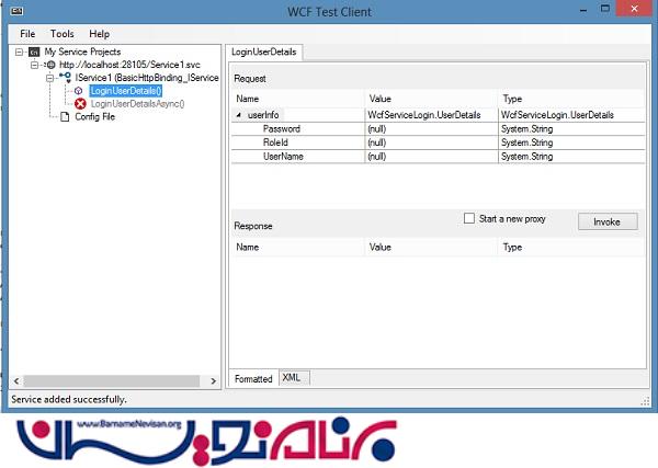 اکنون برنامه را تست کنید قبل از اجرا مطمئن شوید که سرویس در حال اجرا می باشد .