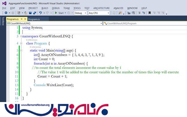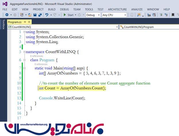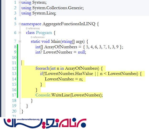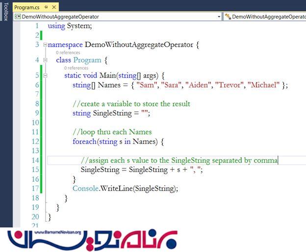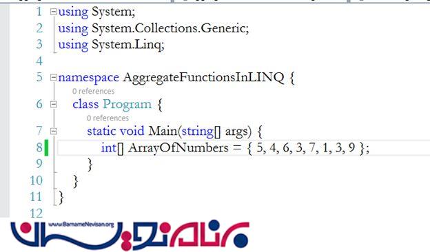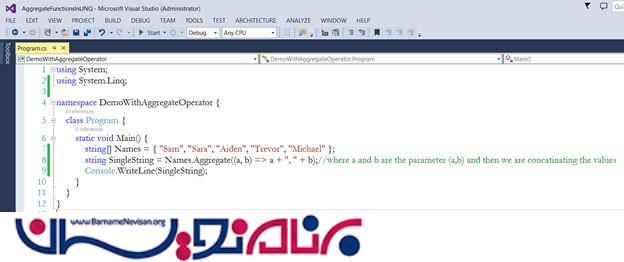 در این نمونه کد، ما نحوه استفاده از تابع Aggregate را خواهیم گفت.