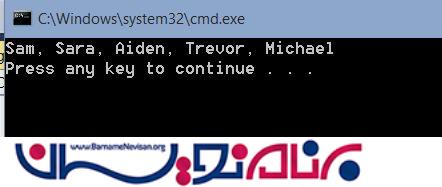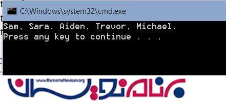 خروجی که به وسیله کاما جدا شده را به عنوان رشته دریافت کردیم. اما ما یک کاما بعد از آخرین رشته داریم و نیاز به یک کاما بعد از آخرین رشته نیست.