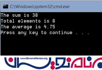 در این نمونه کد مجموع تمام اعداد را پیدا می کند.