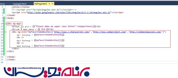 لازم به ذکر است که کدهای بالا حتما باید درون تگ ng-app باشند.