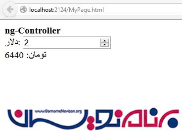 در تکه کد بالا شما می توانید یک دستور جدید با نام ng-controller پیدا کنید و من آن را در اینجا DollarToToman نامگذاری کردم. گام بعدی ساخت این کنترلر می باشد.