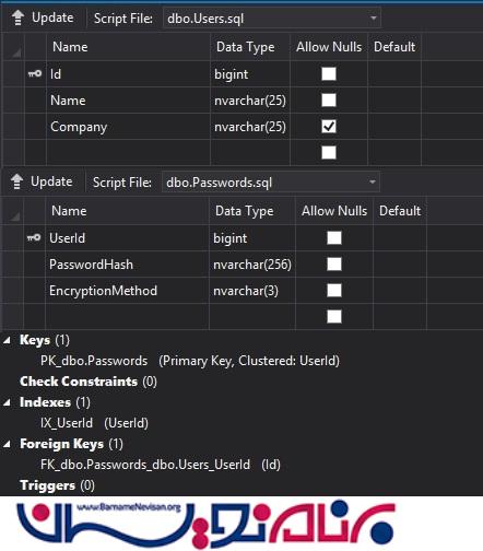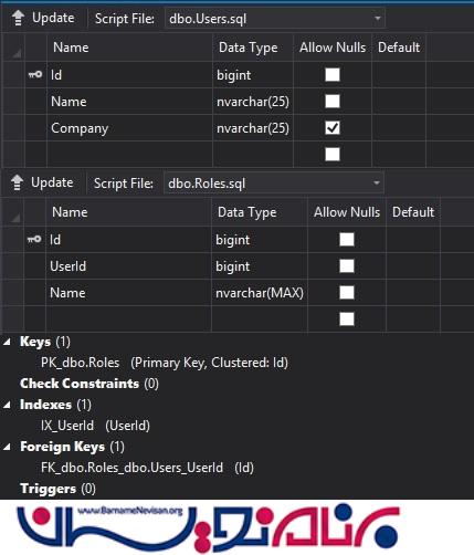 فیلد UserId در جدول Roles به عنوان کلید خارجی در نظر گرفته می شود. این به موتور بانک اطلاعاتی می فهماند که یک جدول رابطه ای داریم. شما در Server Explorer دارید :