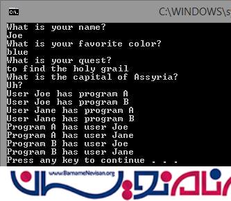 همچنین برای اینکه ببینیم کدام User ها مربوط به کدام Programs هستند کد زیر را به Main اضافه کنید :
