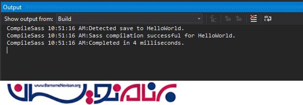 شما می توانید وضعیت را در پنجره خروجی مشاهده کنید. CompileSass یک فایل css کم حجم را تولید میکند.