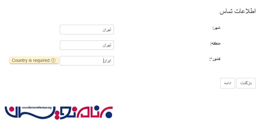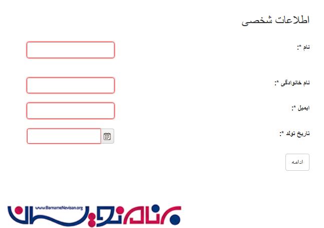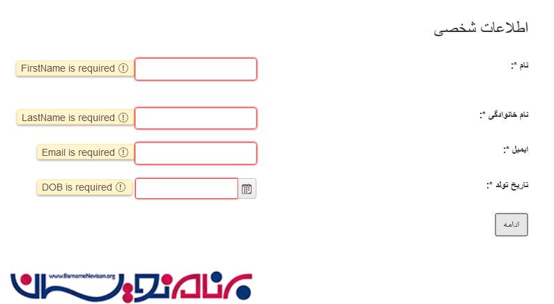 فرم اطلاعات شخصی به صورت زیر مقدار دهی می شود.