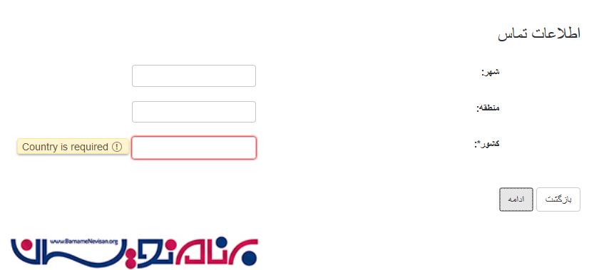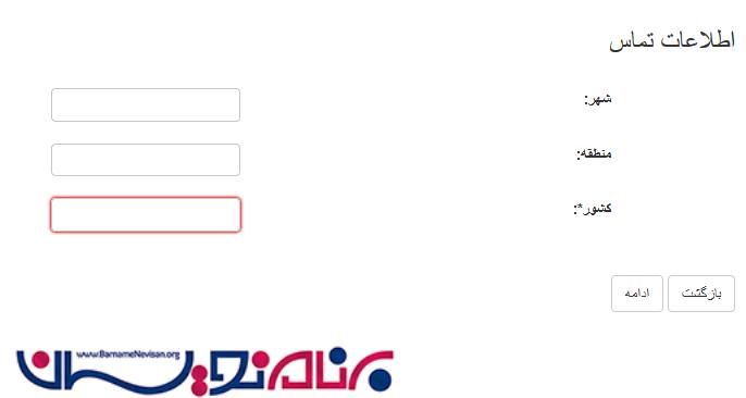 فرم اطلاعات تماس به صورت زیر مقدار دهی می شود.