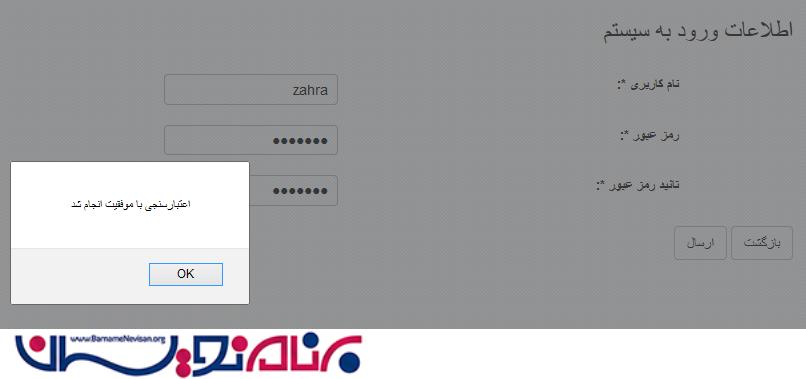 alert("اعتبارسنجی با موفقیت انجام شد")