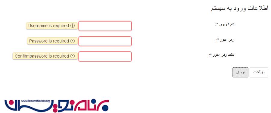 فرم ورود به سیستم به صورت زیر مقدار دهی می شود.