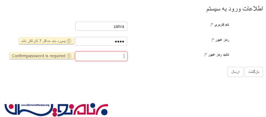 Required Validator های فرم بالا به صورتی که در شکل زیر می بینید نمایان می شود.