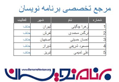 Persons.Add(new Details { Id = 4, Name = "مسعود شریفی", City = "شیراز" });